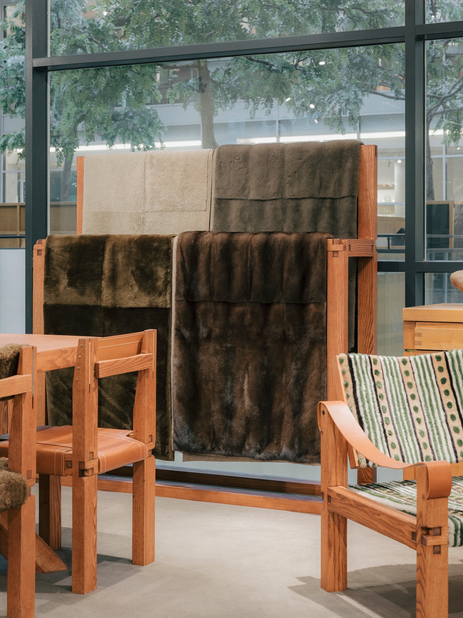 A new cultural and object design department, Yves Salomon Éditions is part of the heritage of the savoir-faire specific to Yves Salomon workshops in working with noble materials such as leather, shearling, and recycled fur. This family-owned house, more than a century old, until now renowned for its creations in the fashion world, is now venturing into the domestic universe. Building on the success of its 2024 collaboration with Chapo Créations through a collection blending wood and shearling intarsia, Yves Salomon Éditions now offers annually furniture pieces and accessories designed by guest designers, under the creative direction of Marcellin Boyer.